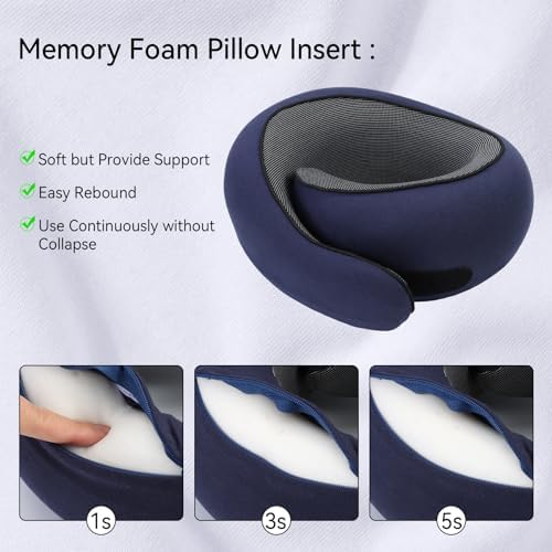MEMORY FOAM NECK PILLOW: Our travel pillow is crafted from high-quality memory foam with advanced 5-second rebound technology, ensuring superior comfort and durability. Its ergonomic design allows for adjustable elasticity, suitable to the shape of your neck and providing optimal support. Experience pressure point relief and indulge in a peaceful sleep while traveling.
