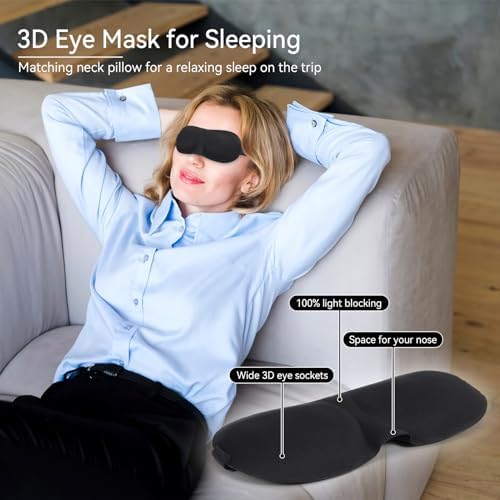ENHANCED SLEEP EXPERIENCE: Along with the neck pillow, our set includes a 3D eye mask for added convenience and comfort. Designed to block out light and create a soothing dark environment, the eye mask promotes deeper, more restful sleep. Its form-fitting shape ensures a comfortable fit without putting pressure on your eyes.
