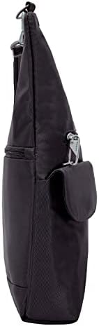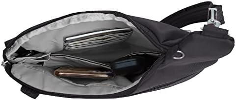 This bag fits snuggly up against your body and looks great doing it! The slash-proof construction and adjustable, cut-proof shoulder strap is great, you can attach it to any post or chair for added safety and convienience. Also comes with an RFID blocking card slots as well as a handy removable LED light.