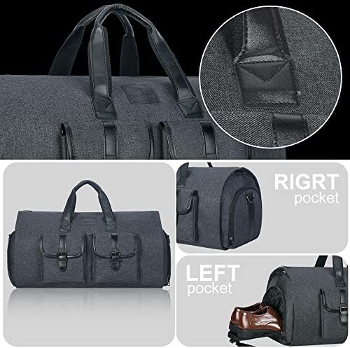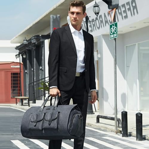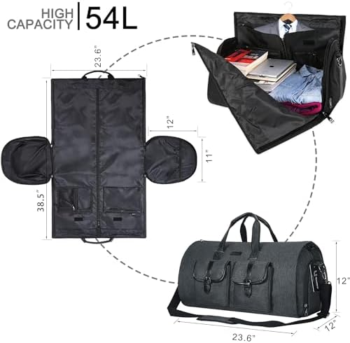 LARGE CAPACITY DUFFEL BAG – After assembled, this garment duffel bag work perfect as a 45L duffel bag. Thanks to multiple interior zipper pockets, it maximizes storage capacity, holding everything from suits, dresses to shoes and ties For even more space, we added an exterior pocket that provides easy access to electronics and travel or business documents, so you can just focus on having a fantastic trip!