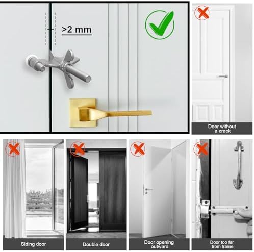 Versatile Security Solutions for Various Doors: Our security door stopper accommodates diverse door types, making it ideal for hotels, dorms, apartments, short-term rentals, Airbnbs, bathrooms, bedrooms, and private spaces. This portable door lock is also instrumental in ensuring pet safety and preventing people from opening doors to strangers.