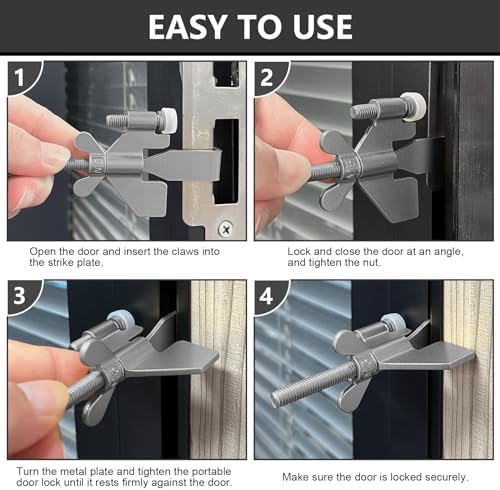 Crafted from Premium Stainless Steel: Engineered from robust stainless steel, our travel door lock undergoes meticulous electroplating and polishing, delivering a sleek touch and reducing the risk of skin injuries. The use of high-quality materials guarantees the durability of this robust door lock.