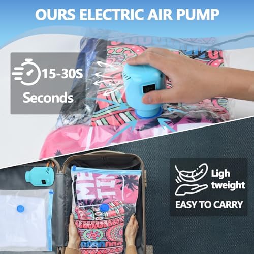 【Premium Electric Air Pump】Our vacuum sealed bags for clothing and bedding come with a high-performance Electric Air Pump. Simply plug it in, press the switch, and watch as it swiftly removes air within seconds. Effortless, time-saving, and far more convenient than manual alternatives.Wonderful experience for you to enjoy clothing storage.