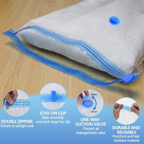 【Reduce Bag’s Volume by 80%】Our clothes space saver storage bags are a game-changer for closet organization. Experience a clutter-free, spacious bedroom or apartment after use. Vacuum seal bags for clothing compress clothing, creating a bigger and tidier living space. Pack more efficiently for travel and ensure long-lasting storage with thick and heavy-duty polyester material. Luggage organizer bags are your travel essentials!