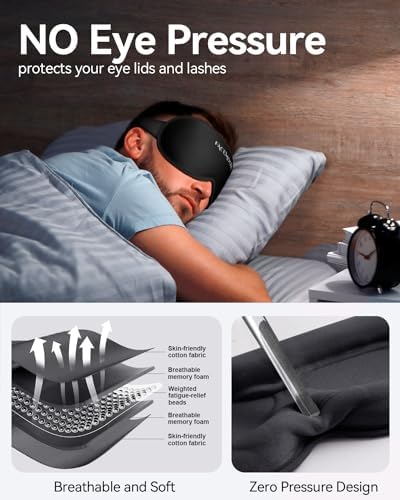 Full light blocking with 3D Contour, Deep Eye Pockets for Freely Blinking, Just the Right Weight, No pressure on eyes.