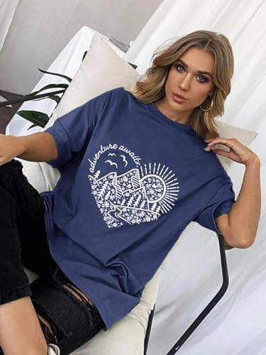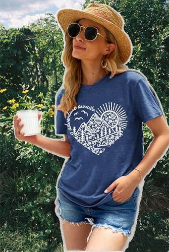 Women Adventure Awaits Outdoor Graphic Tee Shirt Kindness Heart Printed Hike Mountain Nature Travel Shirt Workout Tops