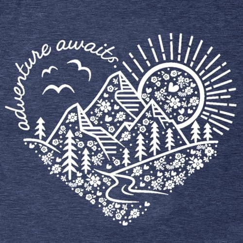 Comfortable, breathable, loose fit and stretchy crewneck short sleeve with nature landscape a cute love heart printed design. Adventure awaits hiking tshirts for women is cotton blend. This cute mountain travel tee top will give you a beautiful wearing experience.