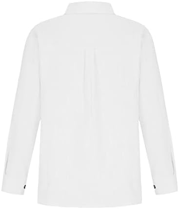 Womens Cotton Linen Button Down Shirt Summer Casual Long Sleeve Solid Color Shirts Loose Work Tops with Pockets