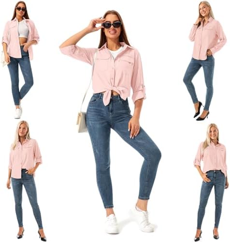 Women’s Quick Dry Sun UV Protection Convertible Long Sleeve Shirts for Hiking Camping Fishing Sailing