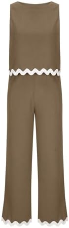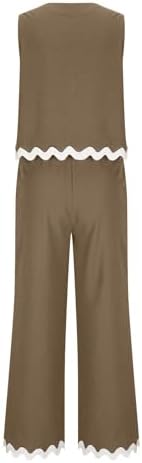 Womens Casual Cotton Linen 2 Piece Outfits Crop Tank Tops Wide Leg Pants Set Casual Lounge Sets