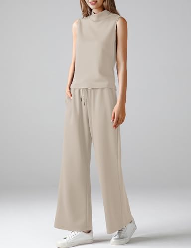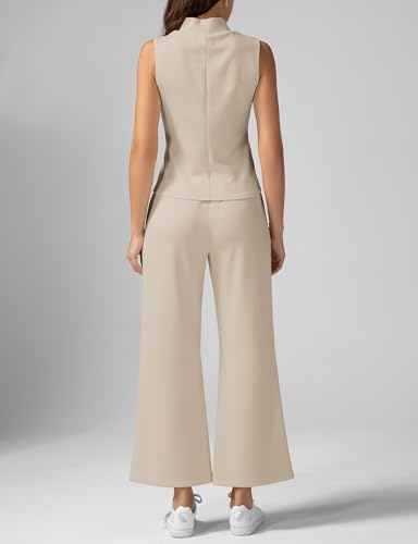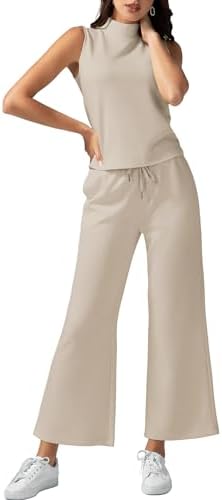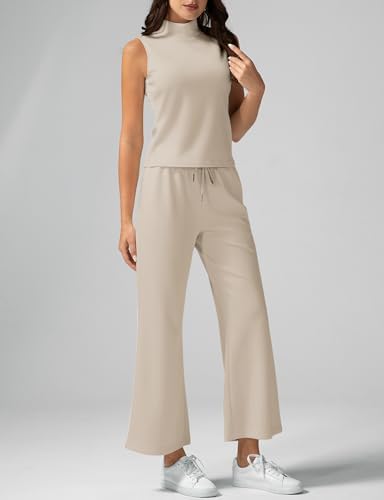 Women’s Summer 2 Piece Outfits Mock Neck Tank Top Cropped Wide Leg Pants Lounge Sets 2024 Fashion Tracksuit