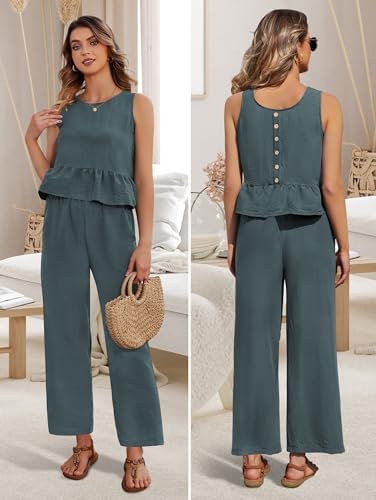 Home Travel Clothing Women’s Summer 2 Piece Sets Sleeveless, Womens Two Piece Outfits Round Neck Tank Crop Top Wide Leg Pants Sets