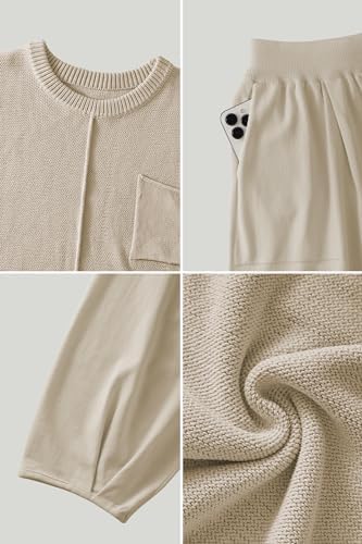Womens Two Piece Outfits Sweater Sets Cozy Pullover Tops and High Waist Pants Trendy Knit Lounge Sets Matching Clothing