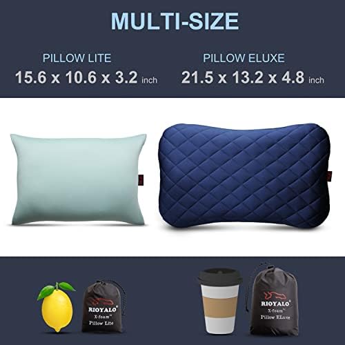 [ SMALL & ULTRALIGHT PACK ] Weight only 9.0 Oz, with the compact Lemon-sized compressible pouch, RIOYALO X-FORM Pillow Lite is the best combination of packable space, comfort and weight. Idea for camping, backpacking, hiking, traveling and trekking.