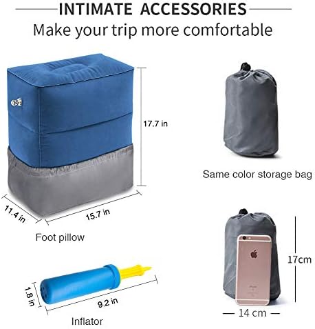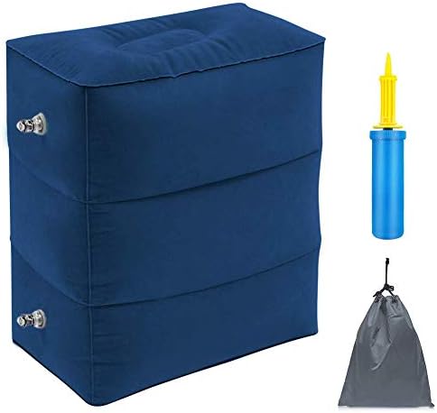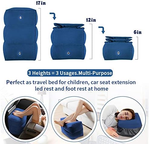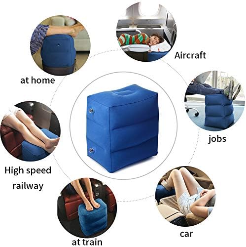 Home Comfort and Sleep Aids ZIQIAN Inflatable Travel Foot Rest Pillow Portable Adjustable Three Layers Height Foot Stool for Airplanes, Cars, Home, Trains, Office to Lay Down or Sleep on Long Flights with Pump(Blue 1PACK)