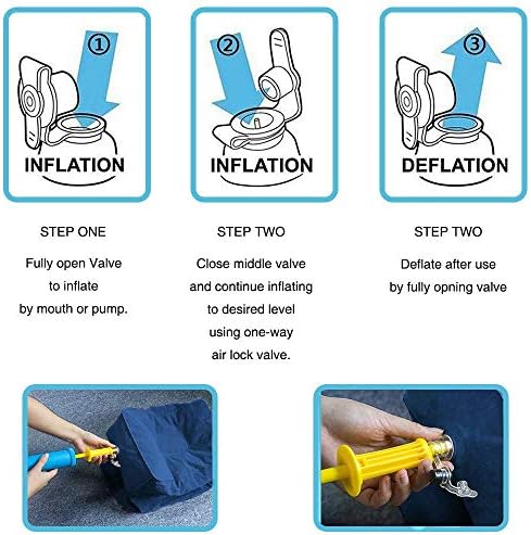 Quickly inflate,Deflate and Compared with others, our double valve is much leakproof than competitors, What’s more, the double valve is designed for mouth blowing, It only takes about one or half minutes with a few breathes, you also can use the hand pump. Release the air about 5 seconds.